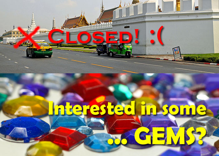 Oh, so you traveled all the way to Bangkok to see its famous Grand Palace? So sorry, you see, that’s closed today. But you’re in luck, I’ve got some lovely gems to show you.