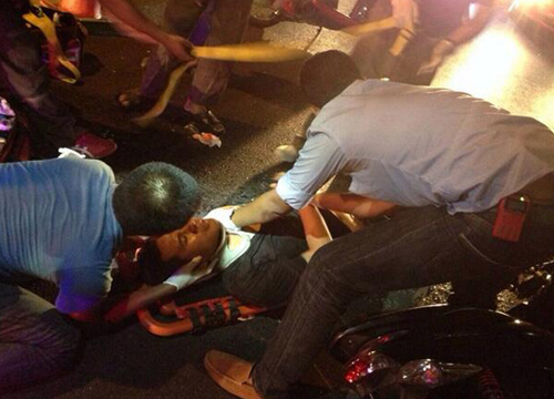 Police Lt. Pratet Chorlamjiak, an investigating officer at the Bang Rak police department, was rescued after he was hit and left lying unconscious in the road.