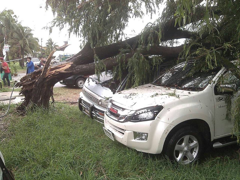At least nine cars were destroyed by falling trees at the provincial government complex and an event venue, and power was knocked out for the entire city for 30 minutes by this morning’s storm.