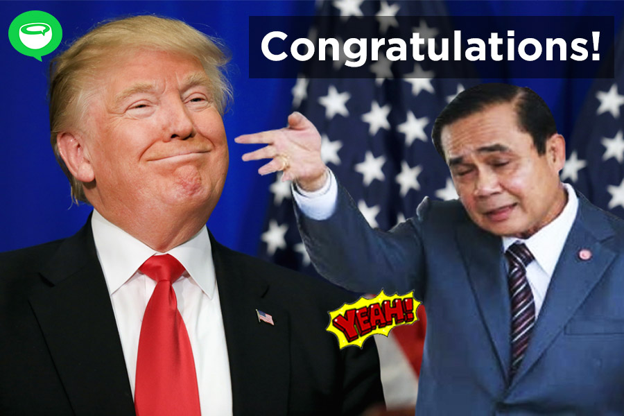 Prayuth Chan-ocha congratulated Donald Trump on the presidential win today, saying it is democratic principle that the voice of the people has to be accepted.