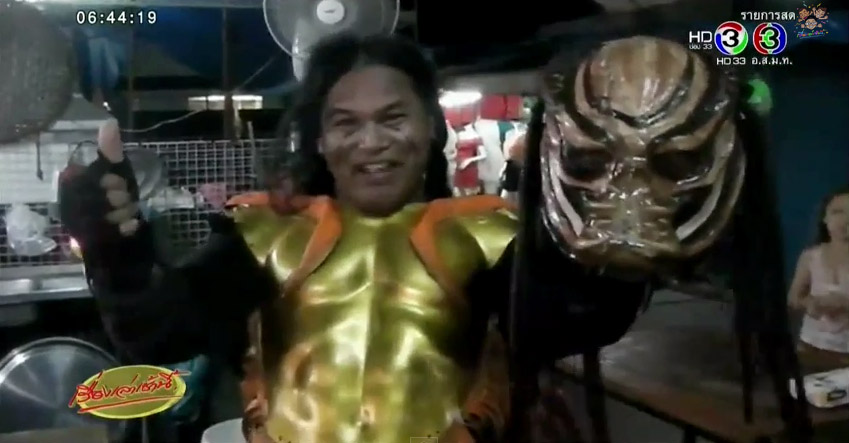 Suwan Suwannarin, a 54-year-old Pattaya man also known as “Uncle Kaek,” was featured on Morning News today for his awesome costume inspired by the interplanetary trophy hunters known as Predators.