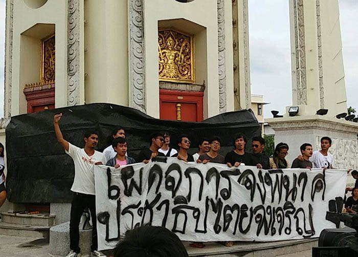 The student group consists of Bangkok activists joined by the so-called “Dao Din” group of activists from Khon Khaen University and their supporters. Both groups of students have been asked to turn themselves in to authorities for staging rallies on the May 22 anniversary of the coup.
