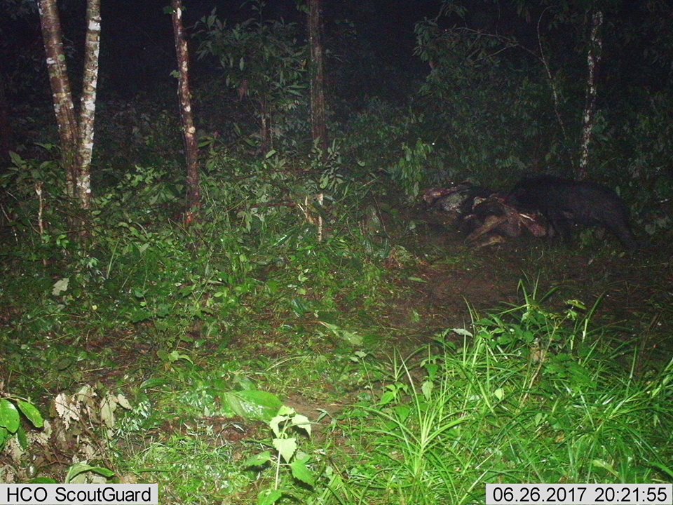 According to Park Chief Uthai Charnsook, the cameras were set up on July 24 to monitor the movements of animals near the salt licks and also near where a guar had recently died after a bloody fight with other guars. Park officials expected there to be many animals coming to eat the carcass of the large Indian bison.