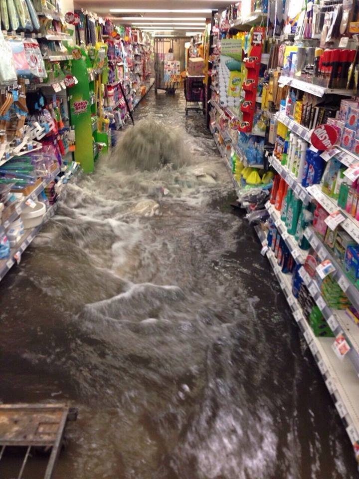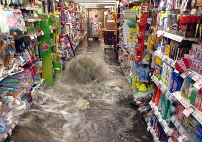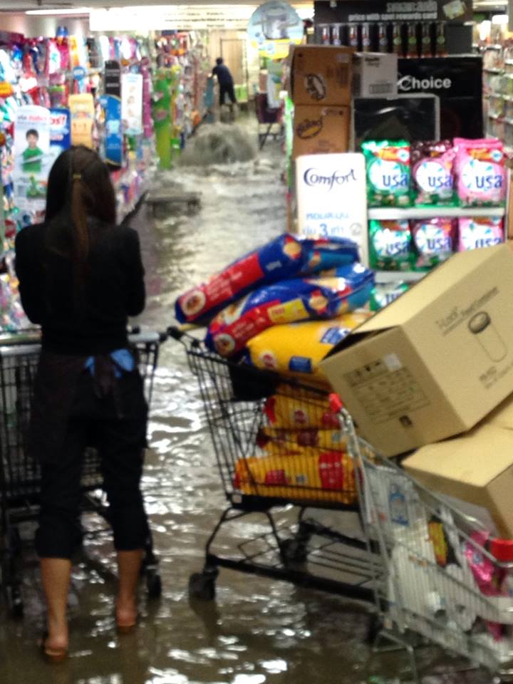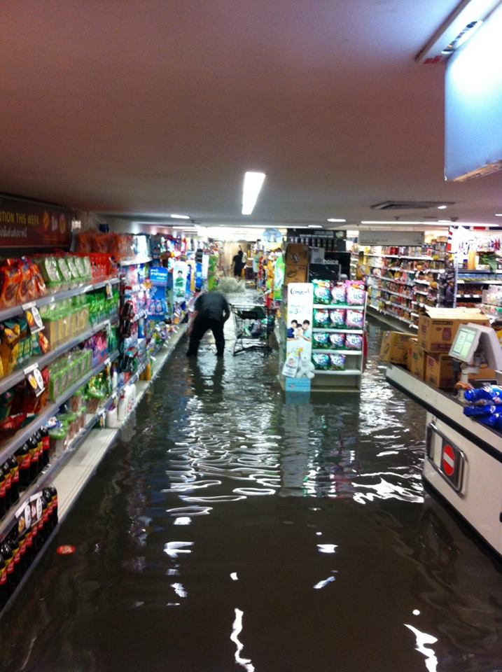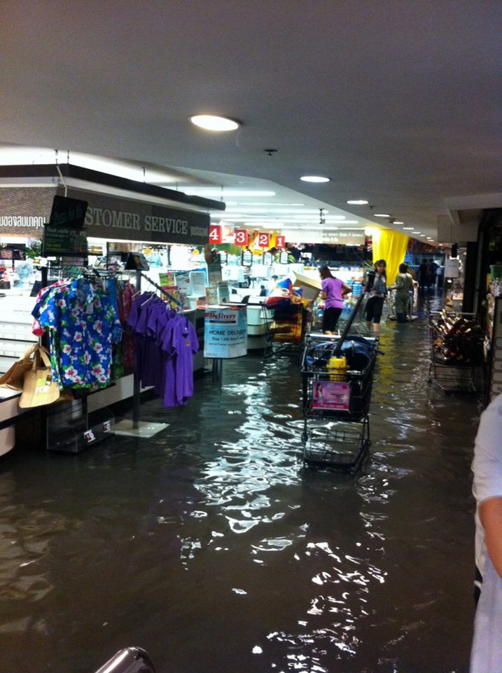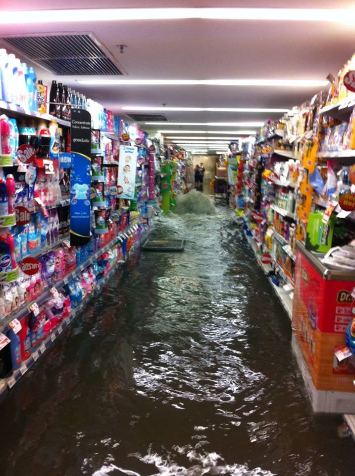 A Tops Supermarket located on the basement level of Robinson Sukhumvit remains closed after the whole place was trashed by a flash flood Tuesday.
