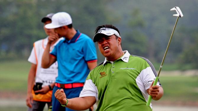 The burly Thai had a chance to win outright on the 18th but his birdie attempt from 12 feet slid past the right of the cup and he signed for a level-par 72 and a total of 276, also 12-under par.