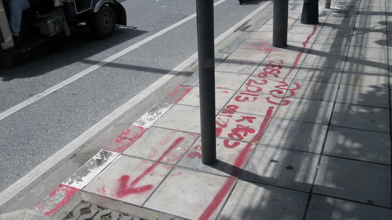 Spray painted “reserved” signs on a Sathorn Road footpath have prompted online complaints about the destruction of public property.