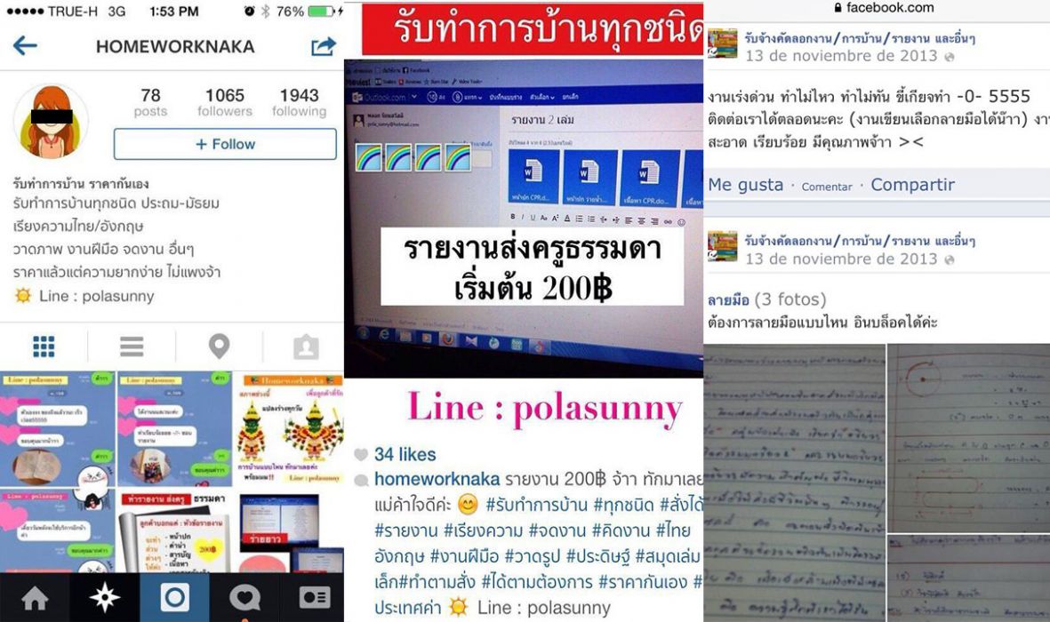 An Instagram account which promises to complete any kind of homework, from watercolor paintings to English essays, for prices starting at only THB200 was exposed on Facebook yesterday by “Kru Tom,” a famous Thai language tutor.