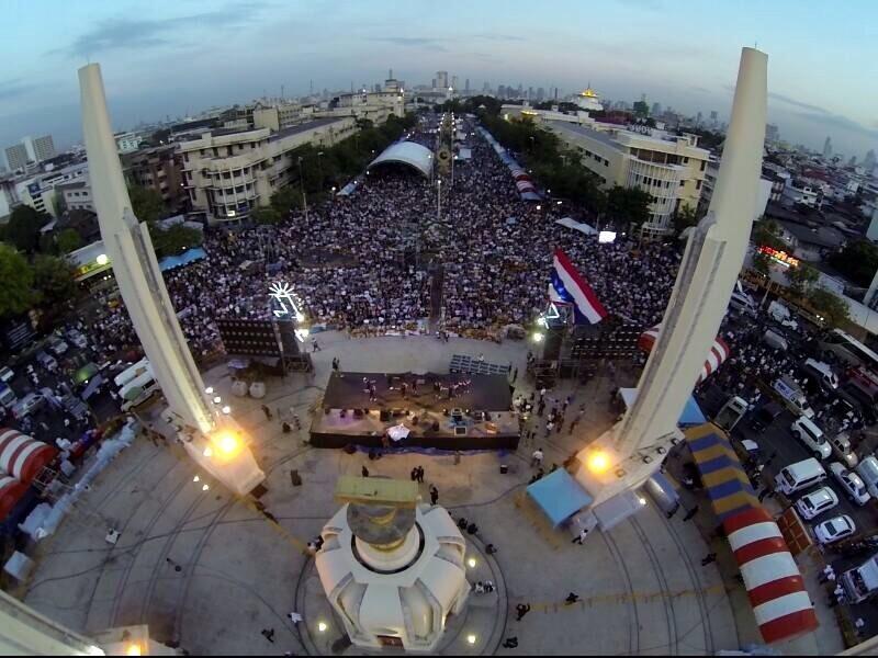 Three stages against the new bill still stand on Ratchadamnoen Road and the authorities have closed eight intersections including Panitchayakarn, Wangdang, Suan Mitsakawan, Makkhawan Rangsan Bridge, Wat Benchamabophit, Kan Ruean, and Rajavithi. Those who do not possess proper documents or employee cards proving they reside or work in the area are not allowed to pass.