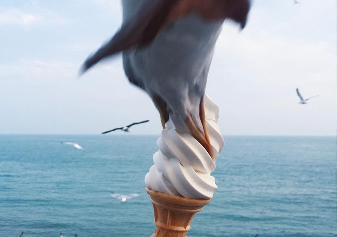 An ill-mannered, British seagull saved Instagram users from seeing another cliche “ice-cream with a cool background” picture when it randomly bit into the Thai girl’s ice cream.