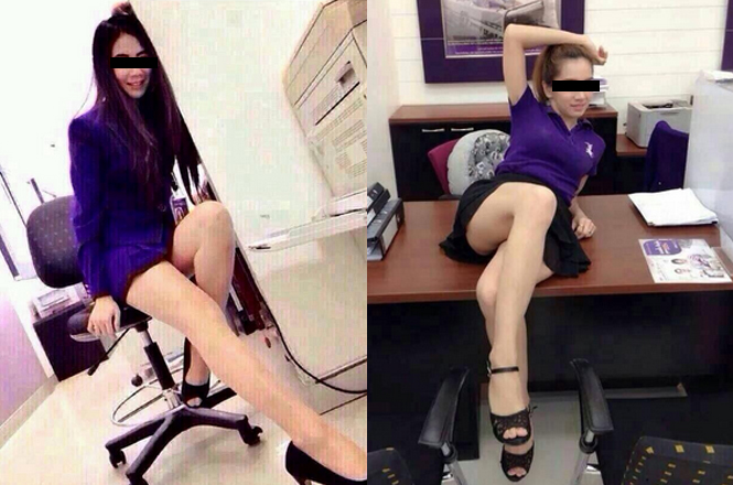 A number of photos featuring sexy bank employees in purple uniforms have been shared online, and if you believe the media, provoked an outcry that they ruined their bank’s image.