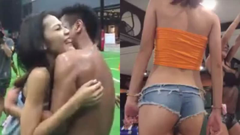 Raunchy videos taken at an unidentified indoor football field in Thailand have received almost 10 million views since they were posted yesterday. The videos feature two sexy girls, who dance on the table as the football players cheer on them.