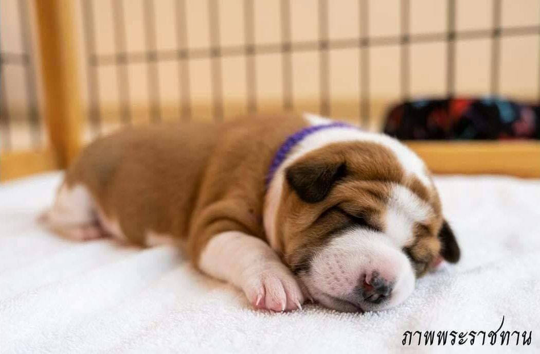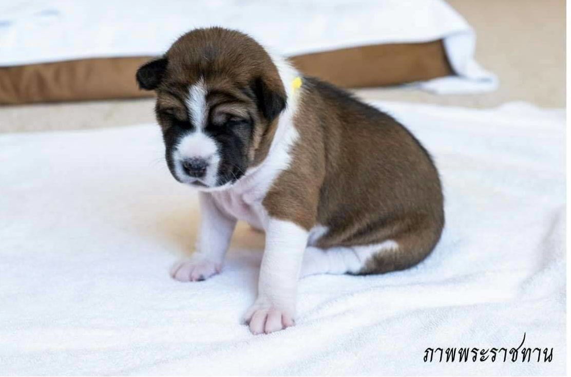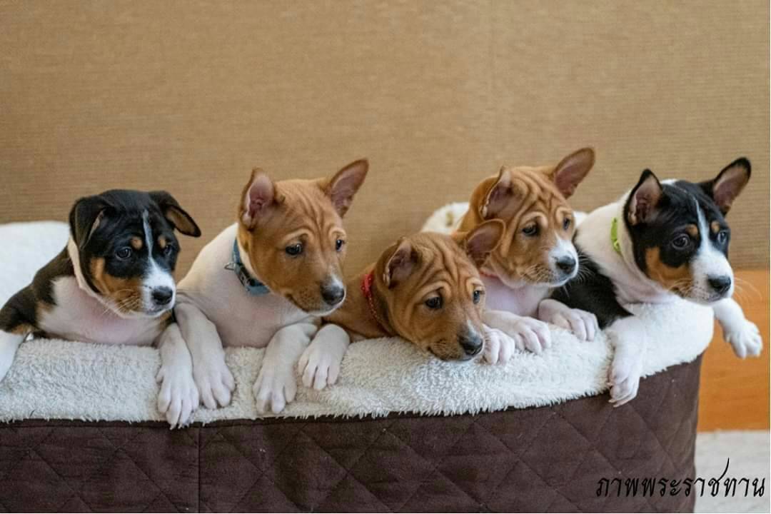 The first litter of puppies was bred by taking Thong Ake’s sperm and artificially inseminating Asley, an unrelated royal dog of the similar-looking Basenji breed. Five were born June 17.