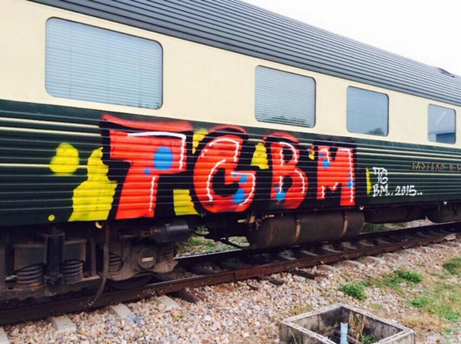 The letters “TGBM” were spray painted onto a carriage of Eastern Oriental Princess tourist train, which ran from Singapore through Malaysia with Kanchanaburi as the destination, Prasop Phusamsai, head of Kanchanaburi Station confirmed yesterday.