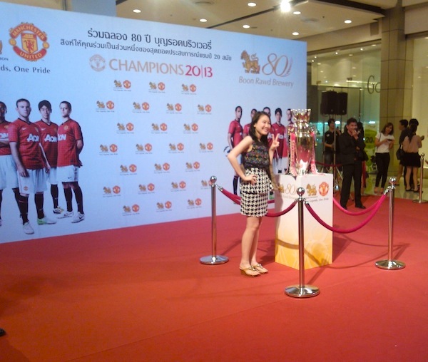 Manchester United’s Premier League Cup is currently on display at CentralWorld in Bangkok. Photo: Kajonsak Intarapong