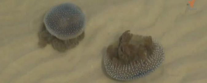 Hundreds of thousands of jellyfish washed ashore yesterday onto Hua Hin’s popular beaches, prompting officials there to ban swimming.