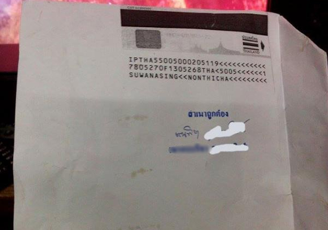 An anonymous user says he bought some grilled squid on a Chiang Mai street and received them wrapped in a paper he was shocked to see was a woman’s signed identification document.
