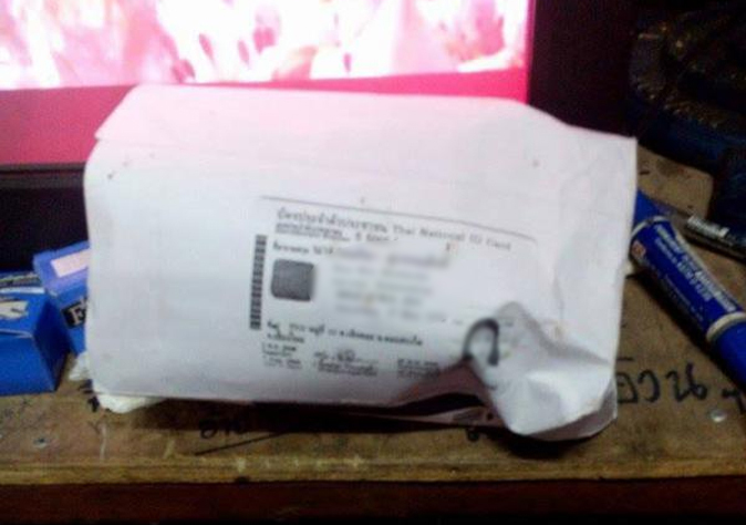 An anonymous user says he bought some grilled squid on a Chiang Mai street and received them wrapped in a paper he was shocked to see was a woman’s signed identification document.