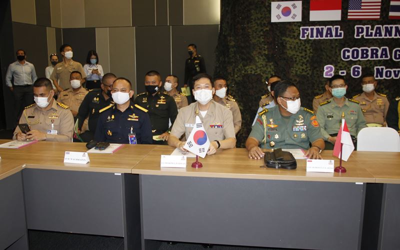 The five-day Cobra Gold 21 planning conference ended Friday at the Serene Phla. The conference saw 202 soldiers – 12 Americans, five South Koreans, two Indonesians and two Australians as well as one representative each from Singapore, Japan, China and India. There were 177 Thai participants. Photos from the event showed attendees sitting in close proximity indoors with all appearing to wear masks – even the Americans.