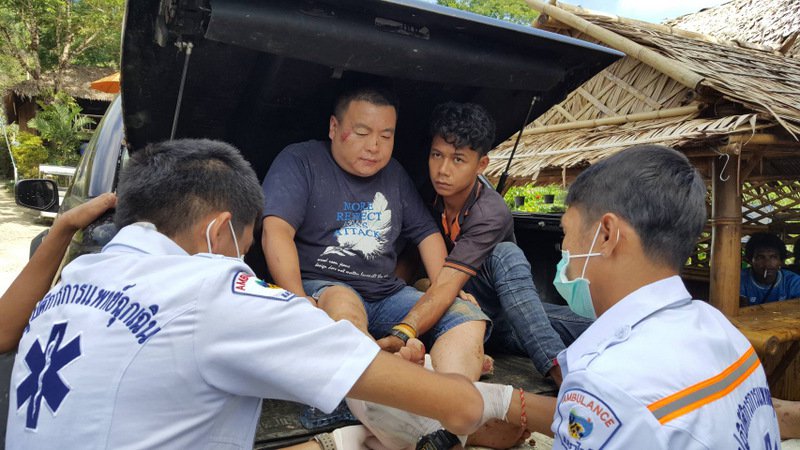 Hu suffered an injury to his ankle and had difficulty breathing. His wife, son, and daughter suffered scratches and bruises. All four were taken to Phuket International Hospital.