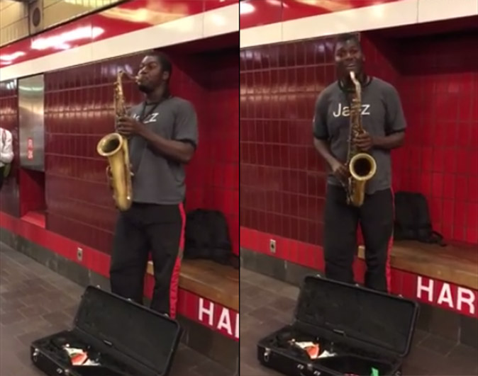 Facebook user Maii Suthiparinyanon shared a video of the street saxophone player playing the anthem, adding she never expected to hear the song in Boston.