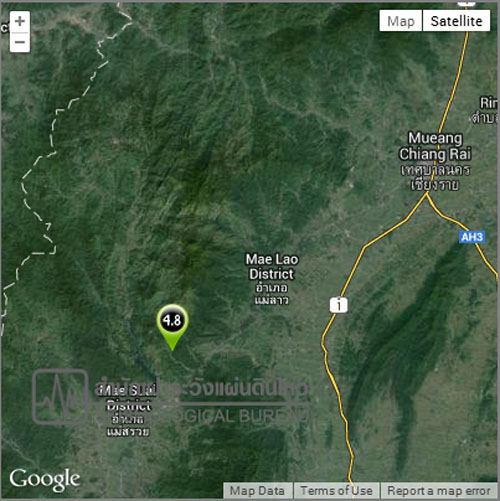 The magnitude-4.8 tremor struck the Mae Suai district 74 kilometers southwest of Chiang Rai city in the early hours of the morning, according to the seismology division of the meteorological department.