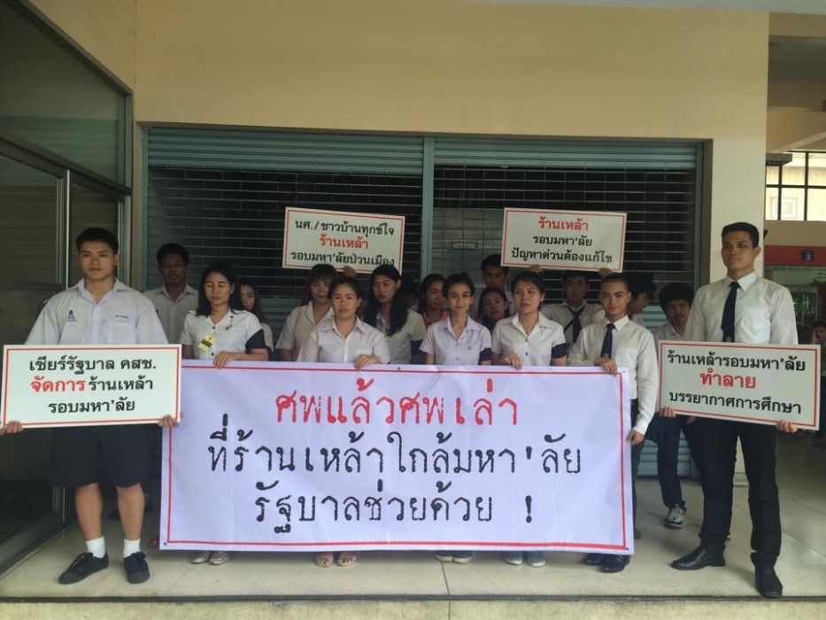 Following the death of a Rangsit University student who was shot after leaving a bar next to his university, more than 30 students from different institutions submitted a letter to junta boss Gen. Prayuth Chan-ocha at the Government House yesterday, asking officials to ban sales within 500 meters of university campuses.