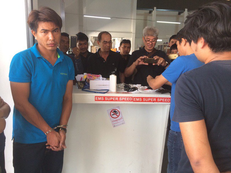 Police have arrested a man who turned up at a Phuket Town post office to sign for a parcel sent from Bangkok by Thailand Post’s EMS service. The box contained more than 2,000 methamphetamine (yaba) pills and and 20 ecstasy pills.