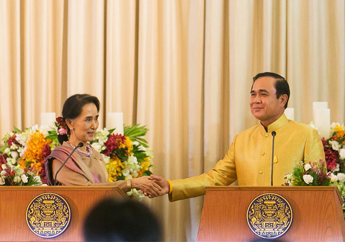Myanmar de facto leader Aung San Suu Kyi met with Thai junta chief Prayuth Chan-ocha today as the two nations signed pacts of cooperation — a new hope of better working conditions and living standards for Myanmar workers in Thailand.