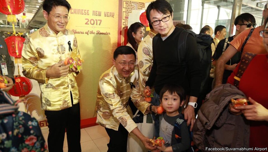 Staff at the airport were also decked out in Chinese costume to welcome the tourists, reported Thai PBS.