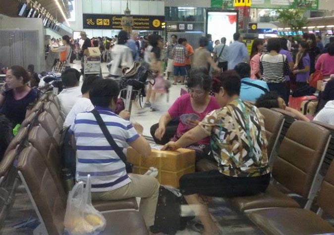 Responding to viral photos of Chinese tourists harmlessly playing cards while waiting for a flight, Suvarnabhumi Airport explained to upset Thai netizens today that, no, there is nothing illegal about it because they weren’t gambling.