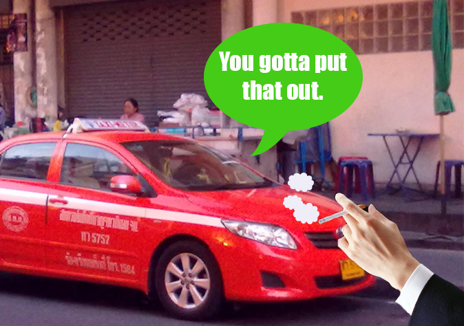 The Land Transport Department and Department of Disease Control have come together to pass a law for public health mandating that all taxis will be non-smoking zones. In addition to the noted health benefits of not lighting up, no one wants to smell a second-hand stank when they’re on an hour-long ride to the airport.