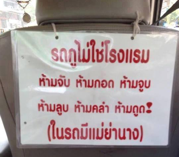 The driver posted this message in his cab, likely because some people in the throes of passion totally ignore the fact he’s just sitting right there.