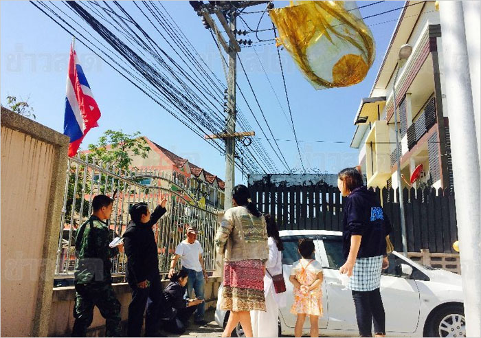Although Wat Chetuphon notified authorities they were launching a really big sky lantern, they left out the part about the homemade explosives, which fell from the sky and exploded, damaging a vehicle and utility pole yesterday.