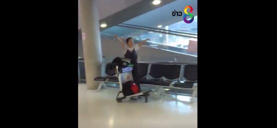 This morning, the tourist police and airport security teams had to be called when a Chinese woman began waving around two fruit-carving knives in the passenger terminal at Suvarnabhumi Airport.
