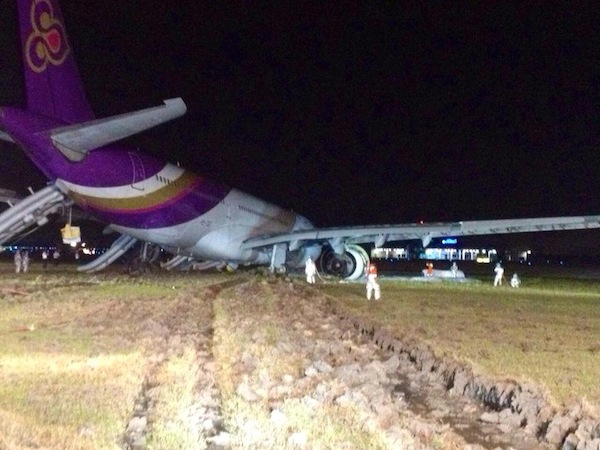 ABOVE: A Thai Airways jet crash landed on Sept. 8, 2013. The next day the airline ordered the logo painted over to try to “hide” its identity. Photo: Wings magazine