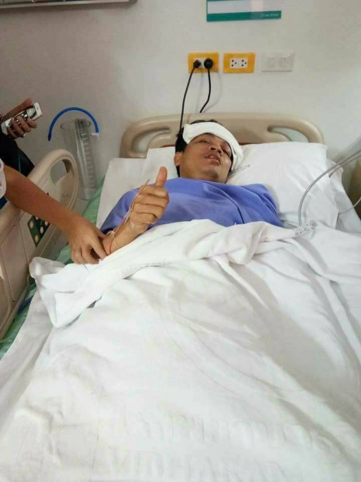 As he was taken to the hospital, he told the paramedics that his lips and his left side were in pain. Nevertheless, he gave the cameras a thumbs up, according to Khaosod.