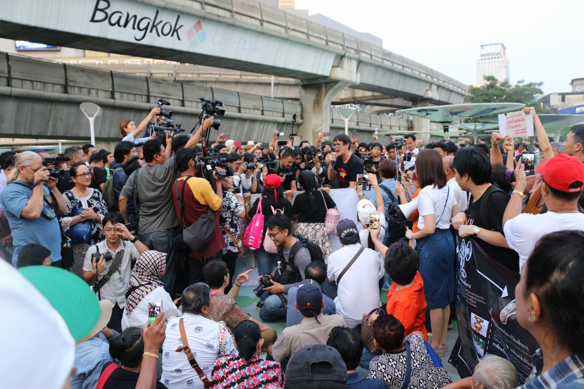 The activists, who organized the demonstration in central Bangkok on Saturday, are accused of “inciting unrest” and violating a junta ban on gatherings of more than five people that has been in place since the 2014 coup.