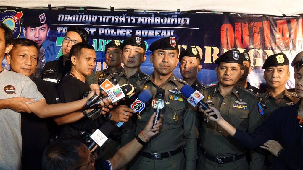 Police announced the arrests of the “outlaw foreigners” at a major press conference held just outside of Soi Cowboy, an infamous red-light district in Bangkok (one report suggested it was because a police raid on foreigners took place there that same day).