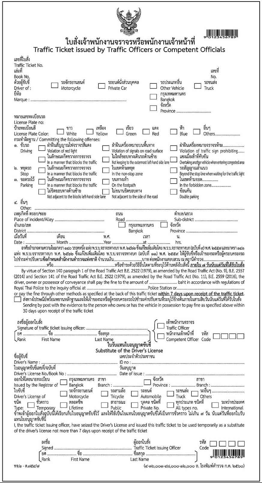 The newly re-launched and revamped Thai traffic tickets will include English language translations for each section as well as a section to appeal the charge within 15 days if you don’t agree with it, reported The Nation.