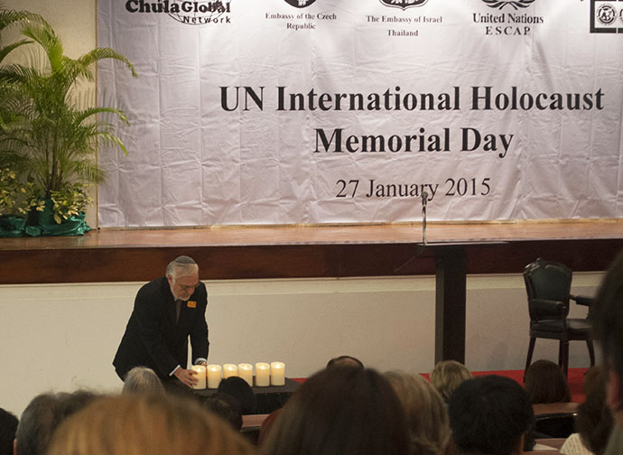 ABOVE: Rabbi Abraham Cooper of the Simon Wiesenthal Center lights a candle in remembrance of Holocaust victims at an event held at Chulalongkorn University on Jan. 27.
