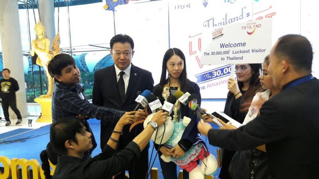 Junyi Huang, who arrived in Bangkok from Guangzhou, China, on Dec. 5, was greeted at Suvarnabhumi Airport with a welcoming ceremony since she was the 30 millionth visitor to Thailand this year.