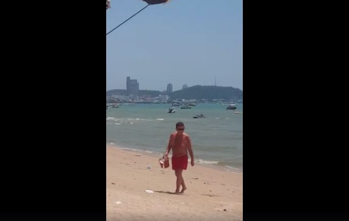 A 25-second clip doing the rounds on Thai social media shows a foreign man collecting trash on the beach in what appears to be Pattaya.