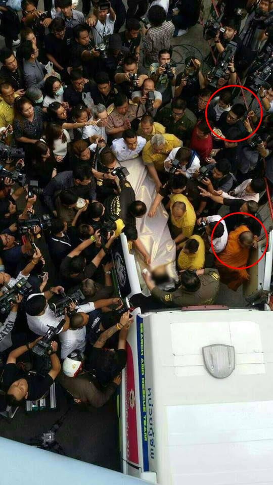 As the popular actor’s body was being transported out of the hospital into a van, which was taking him back to his hometown in Buriram province, dozens of disrespectful reporters snuck through the barriers and pushed in front of Por’s family and a monk, invited for a religious ceremony to guide Por’s spirit, to snap photos.