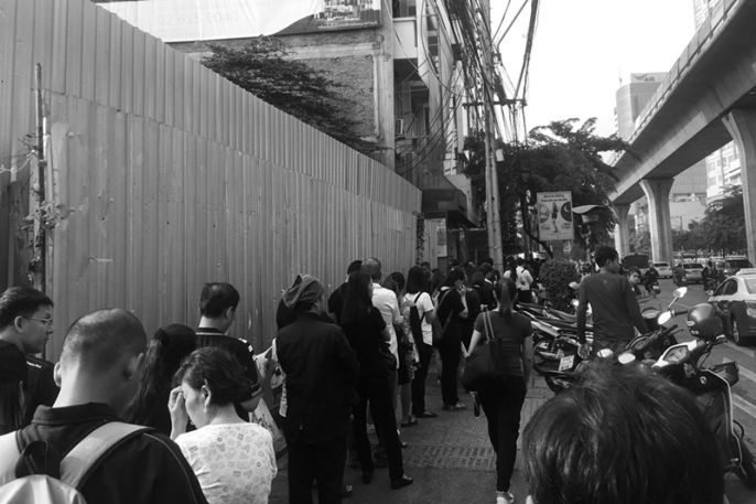 The line reportedly stretched from the bank onto Paholyothin road as of this morning.