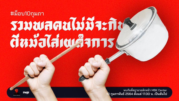 In growing solidarity against military rule in both countries, Thai pro-democracy group Ratsadon said it will organize a demonstration on Wednesday afternoon by clanging pots and pans, just like people have been doing in Myanmar since last week’s coup.