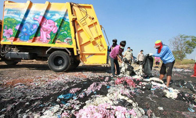 Napat Menthong, 38, said today that thousands of condoms found partially burned had only been left there to dry before she planned to sell them to a recycling plant in Samut Sakhon province.