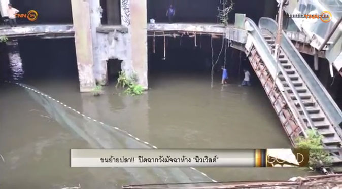 The New World shopping mall, a roofless, four-story building near Khaosan Road, had become one of Bangkok’s unofficial, bizarre attractions after rain filled its basement and exotic species reproduced to turn it into an unusual aquarium.
