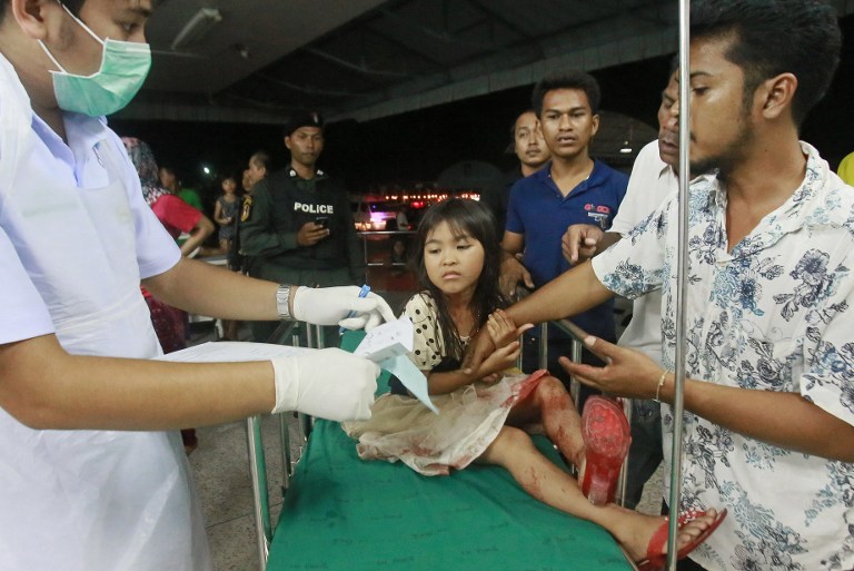 A young girl injured in yesterday’s bombings is treated in Pattani, Thailand. Photo: Tuwaedaniya Meringing / AFP