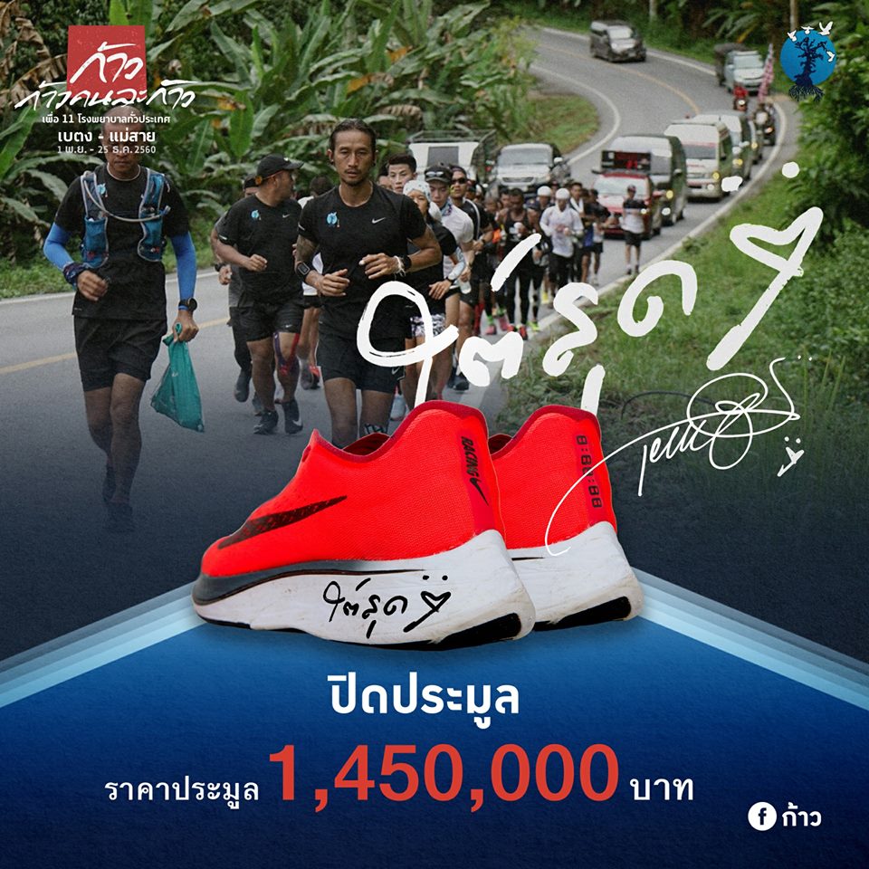 The shoes were actually worn by Toon during his historic charity run and sold for THB1.45 million, THB1.23 million, THB999,999 and THB717,000 respectively.