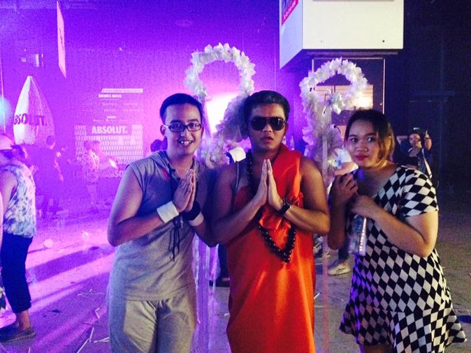 Trasher made fun of the controversial sect by altering images of their bizarre-to-begin-with headquarters on a projection screen with a photoshopped photo of the temple’s infamous abbot Dhammachayo in fabulous costume at their “Bitch You Better work it work work work It out” event at Central World, according to Khaosod English.